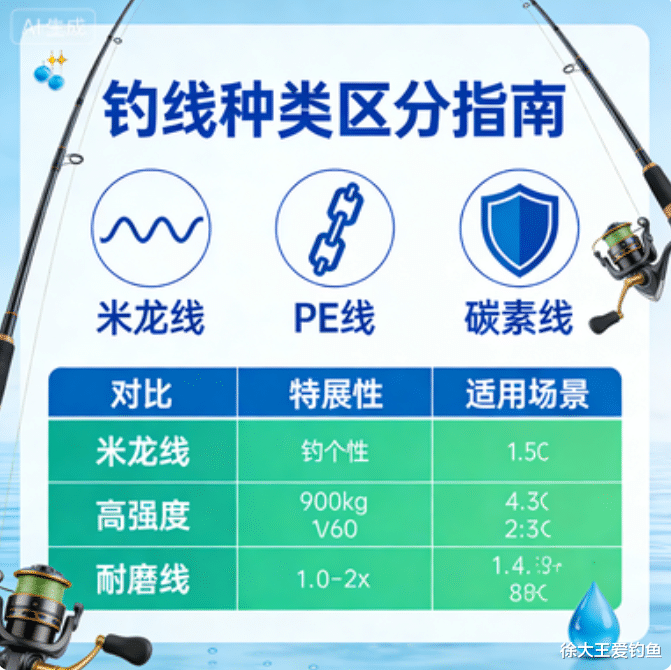 最后补充几个新手选钓线的避坑提醒:一是不要盲目追求细号线,细号线虽然灵敏度高,但拉力弱,容易断线跑鱼,要根据目标鱼种的大小选择合适的线径;二是不要混用不同材质的主线和子线时不注意搭配,比如PE线做主线时,一定要搭配碳线或尼龙线前导线,否则隐蔽性差且不耐磨;三是不要忽略钓线的老化问题,尼龙线和碳线长期使用后会老化变脆,建议每3-6个月更换一次,PE线虽然老化慢,但磨损后也要及时更换;四是不要只看价格,贵的钓线不一定适合自己,新手入门先从尼龙线开始,熟悉后再根据作钓需求尝试PE线和碳线。其实选钓线没有那么复杂,记住“小型鱼选尼龙、大体型/路亚选PE、复杂水域/精准作钓选碳线”的核心原则,再根据具体场景微调,就能少走弯路。最后想问问大家,你平时作钓最常用哪种钓线?有没有因为选错钓线跑过大鱼的经历?欢迎在评论区分享你的经历和选线技巧,帮更多新手精准选线、多上鱼!